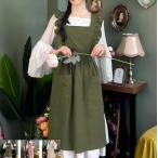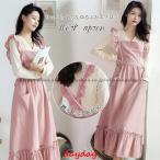 フリル フリル 保育士 綿素材 エプロン フリーサイズ ユニフォーム ワンピース かわいい メイド風 デザイン キッチン ガーデニング ロングエプロン