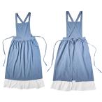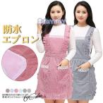 レディースエプロン フリル 可愛い 撥水加工 割烹着 女性 介護 サロペット フリーサイズ クッキング カフェ スモック ワンピース サロン レース