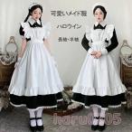 メイド服 コスプレ衣装 レディース ワンピース 長袖 膝丈 エプロン カチューシャ付き クラシカル ロイヤルメイド フリル ハロウィン 制服 黒 白 喫茶店変装