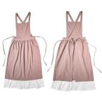 PATIKIL コッ トンリネンエプロン ヴィンテージ クロスバック エプロンドレス フリルスモック ポケット付き キッチン 女性 料理 ガーデニング