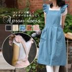 エプロン 大人可愛い 肩フリル おしゃれ お花屋 エプロンワンピース レディース 保育士 ゆったり 北欧 カフェ 粘土 食事 料理教室 無地 綿 Aライン 柔らかい