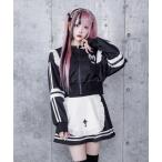 ワンピース ラインフリル袖ZIPトップス+エプロンスカートセット