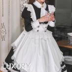 メイド服 丸衿 クラシカル黒ロングワンピース 白ロングフリルエプロン 1セット