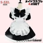 【25日限定10%OFFクーポン】メイド服 大きいサイズ 可愛い ロリータ コスプレ 4点セット メイド ハロウィン ゴスロリ風 ロリータドレス 洋服 衣装 エプロン フリル裾 蝶結び お姫様 セクシー コンカフェ メイドコスチューム クリスマス 黒 cosplay 仮装 女装 喫茶店 S~5XL