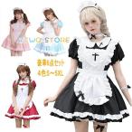 【ハロウィン】ロリータ服 メイド ワンピース メイド服 コスプレ 衣装 仮装 半袖 フリル 可愛い エプロン カチューシャ ウェイトレス コスチューム カフェ