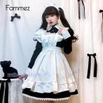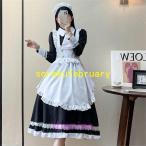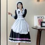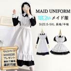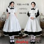 メイド服 コスプレ衣装 レディース ワンピース 長袖 膝丈 エプロン カチューシャ付き クラシカル ロイヤルメイド フリル ハロウィン 制服 黒 白 喫茶店変装