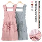 エプロン レディース かわいい ワンピース型 綿100% おしゃれ フリル レース ポケット付き 肩掛け キッチン カフェ風 料理教室 無地 ロング丈 北欧風 お姫様