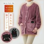 割烹着 裏起毛 冬 レディース 長袖 かっぽう着 あったか 保育士 前開き ポケット付き ネコ柄ふわふわかっぽう着 猫 暖かい ロング丈 LL 3L 大きいサイズ