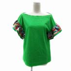 エミリオプッチ ラッフルスリーブTシャツ カットソー 半袖 ボートネック シルク S マルチカラー 緑 グリーン 71RP66 IBO83 レディース