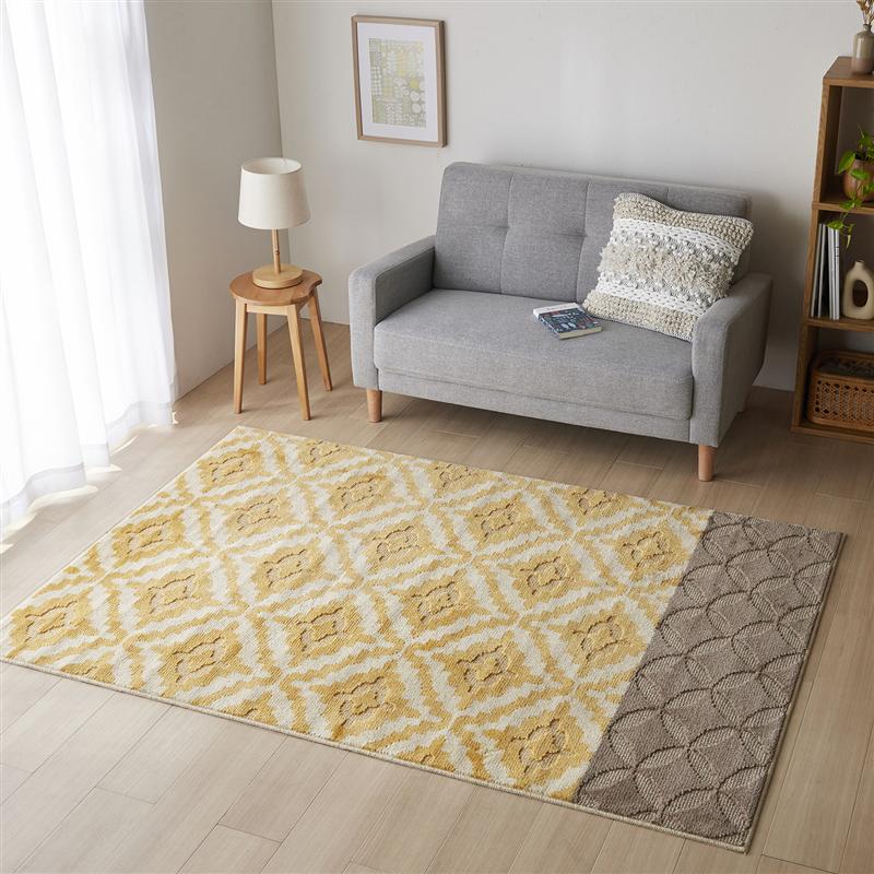 ベルメゾン 北欧テイスト柄の洗えるタフトラグ イエロー 「 イエロー グリーン 」◆ 約200×250 ◆(cm)◇ ファブリック ラグ ラグマット カーペット じゅうたん 絨毯 エリアラグ 新生活 ◇