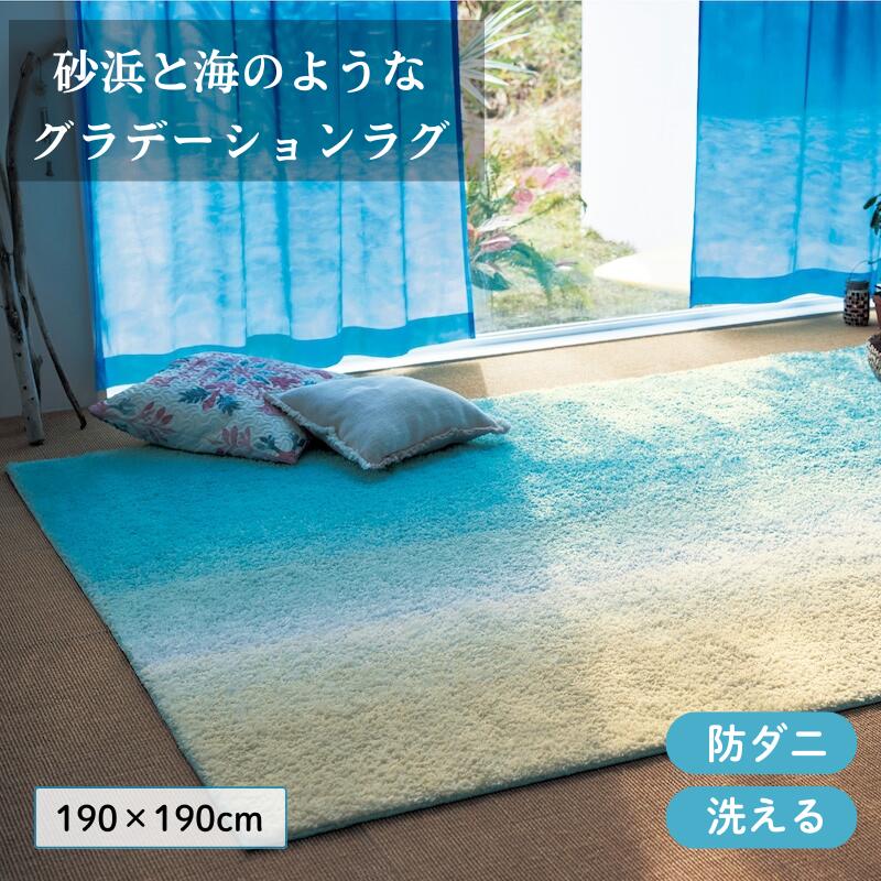 【LINE友達追加でクーポンGET】海 砂浜 涼し気 エモ ラグ[日本製]◆ 190cm × 190cm ◆◇ 防ダニ 洗濯機OK 床暖房OK ホットカーペットOK 洗えるラグ ラグマット カーペット マット じゅうたん 絨毯 エリアラグ 新生活 おしゃれ ベルメゾン