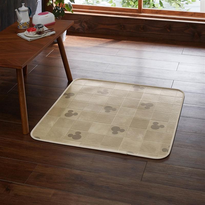 ◆ 約90×90 ◆【Disney】 ディズニー 拭けるミニラグマット「ミッキーモチーフ」「タイル 木目」 ◇ ファブリック ラグ ラグマット マット カーペット じゅうたん 絨毯 エリアラグ 新生活 拭ける タイル 撥水 ダイニング 水に強い 食べこぼし 子供 ペット 傷防止 ◇