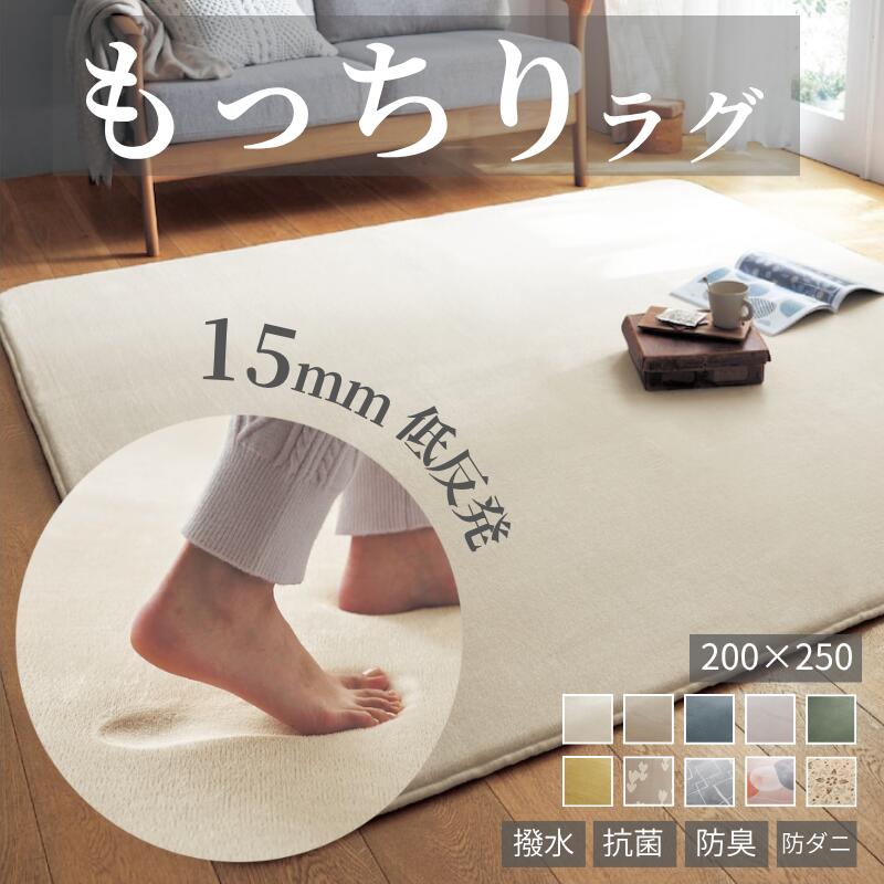 厚さ15mm もっちり ラグ 洗える 撥水 防汚 防ダニ 抗菌 防臭 ウレタン入り | 200cm × 250cm | ふわふわ 裏面滑り止め付き 床暖房OK ホットカーペットOK 防音 ラグマット マット 無地 柄 一人暮らし キッズ ファミリー 家族