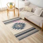 ボヘミアン 曼荼羅 ラグ ラグマット フリンジ 洗えるラグ 綿麻製 キリム柄 エリアラグ エスニック カーペット 滑り止め ネイティブ 洗濯 ウォッシャブル