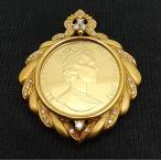 中古品 ペンダントヘッド マン島キャット金貨 エリザベス2世 1/2オンス 純金 K24 インゴット 999.9 K18枠 ダイヤモンド 31.1g