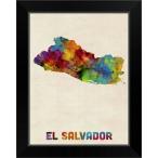 パネルアート エルサルバドル水彩マップブラックフレームウォールアートプリント 、 マップホームデコ- show original title