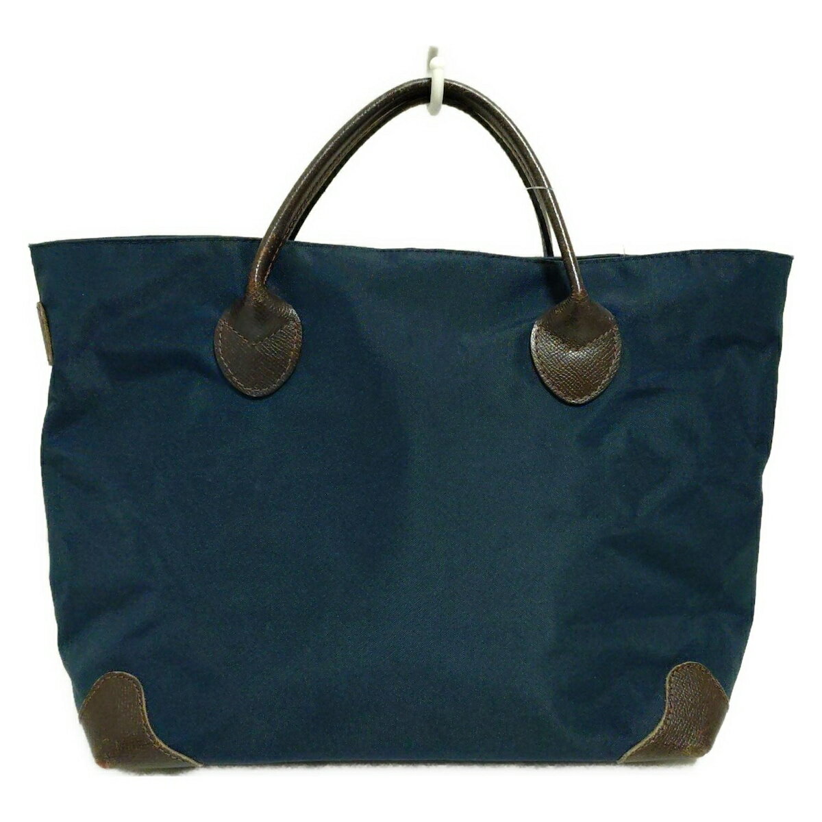 【中古】Herve Chapelier(エルベシャプリエ) レザーハンドル舟型トートS ハンドバッグ NDライン ネイビー レザー