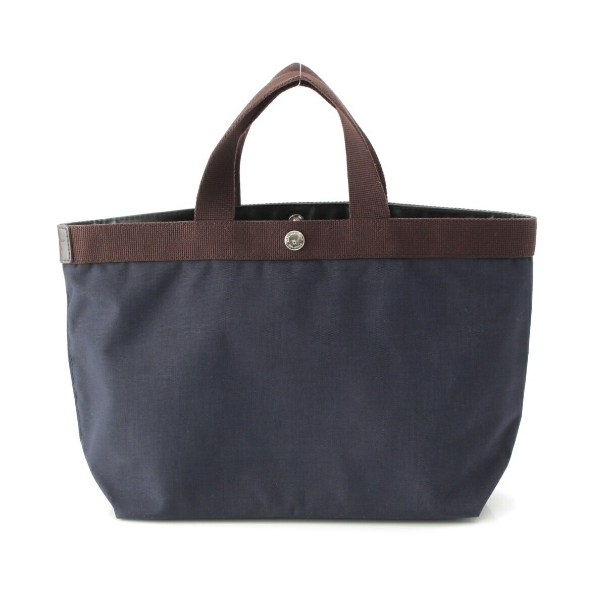 エルベ・シャプリエ Herve Chapelier スクエア 704C キャンバス ハンドバッグ ネイビー ブラウン ミディアム【中古】【正規品保証】