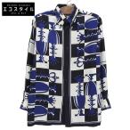 HERMES エルメス 総柄 シルクシャツ トップス メンズ ブルー 39