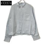 HERMES エルメス セリエボタン ブルー リネン ノーカラーシャツ ライトブルー 43/17 トップス リネン メンズ 中古