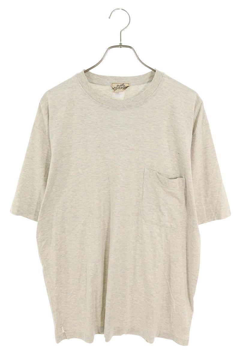 エルメス HERMES サイズ:XL Hロゴ刺繍ポケットTシャツ(グレー)【317052】【BS99】【メンズ】【中古】bb317#rinkan*C