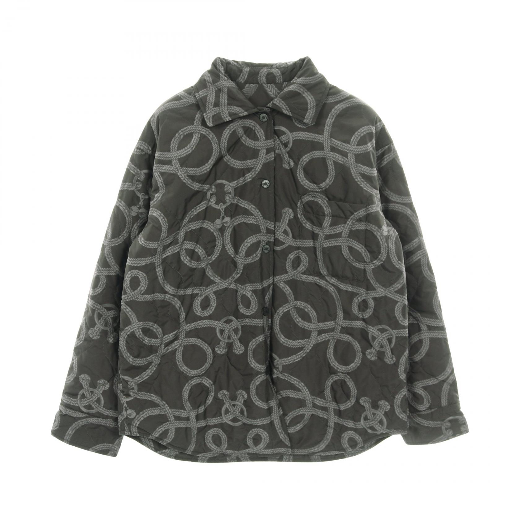 エルメス HERMES セリエボタン シャツ ジャケット 総柄 ダークグレー 中綿 レディース 中古