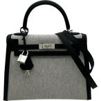 エルメス HERMES ケリー25 外縫い G刻 エクリュ/ブラック/シルバー金具 トワル/スイフト ショルダーバッグ レディース 中古