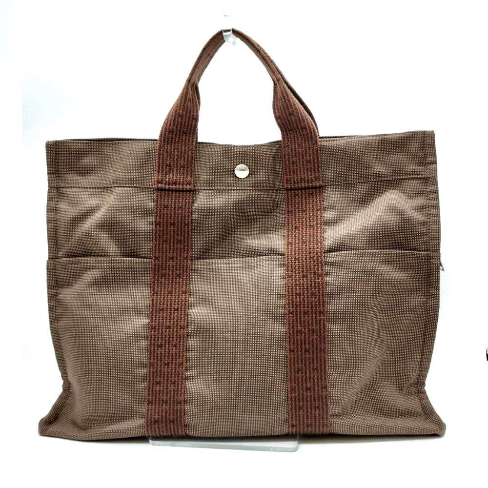【絶対お得!!クーポンあり&10%OFF】エルメス エールライン トートMM ブラウン 茶 シルバー金具 キャンバス ハンドバッグ トートバッグ ABランク レディース 中古 HERMES