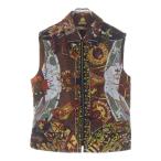 HERMES エルメス マルジェラ期 総柄プリント シルク ジップアップ ノースリーブジャケット ベスト ブラウン