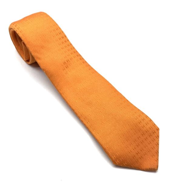 HERMES エルメス ネクタイ 剣先幅約7cm Hロゴ シルク素材 オレンジ 橙色 メンズ スーツ ジャケット ビジネス 二次会 結婚式 管理RY25005792