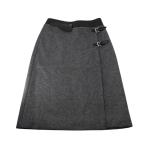 【中古】HERMES(エルメス) 巻きスカート ひざ丈/一部ラムスキン/2025-26AW グリ・ミカ(グレー×黒) ウール