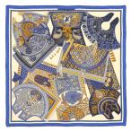 エルメス HERMES スカーフ カレ90 スーパー シルク クエスト ブルー シルク100%(68841)