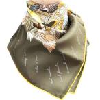 HERMES エルメス カレ90 侵入者 鳥柄 シルク スカーフ カーキ 未使用 管理番号:11114