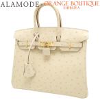 HERMES(エルメス) バーキン25 ナタ アイボリー オーストリッチ ゴールド金具 U刻印 ハンドバッグ トートバッグ 40802180115【アラモード】