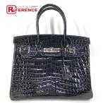 HERMES エルメス バーキン30 バーキン 30 カバン バッグ トートバッグ クロコ シャイニー ハンドバッグ ブラック レディース【中古】