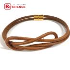 HERMES エルメス ネックレス アタメ 2重ブレスレット アクセサリー チョーカー レザー メンズ ブラウン 【中古】