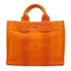 (美品)HERMES エルメス フールトゥ PM ハワイ限定 コットンキャンバス オレンジ トート ハンドバッグ シルバー金具