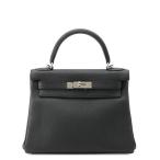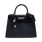 エルメス ハンドバッグ ケリー28 内縫い ブラック/シルバー金具 トゴ X刻印 2wayショルダー 黒 【安心保証】