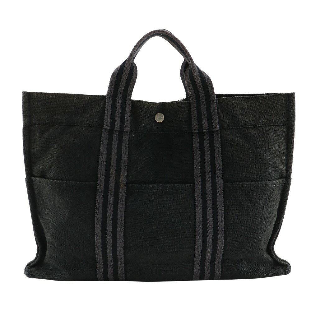 【スーパーセール10%OFF対象】エルメス HERMES フールトゥMM ハンドバッグ トートバッグ キャンバス 黒 手提げ A4 スナップボタン Fourre ToutMM ユニセックス【中古】B-ランク