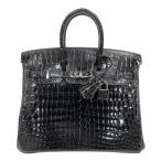 HERMES(エルメス) バーキン25 ブラック黒 ニロティカス クロコダイル シルバー金具 □M刻 ハンドバッグ トート 40802181632【アラモード】