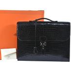 エルメス 超美品 希少 クロコダイル ポロサス シャイニング サックアデペッシュ ビジネスバッグ ブリーフケース S金具 黒 □R刻印 HERMES