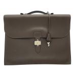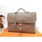 【名東】エルメス サックアデペッシュ 38 ヴェールグリス エトゥープ トゴ □P刻 バッグ ブリーフケース カーキ 男性