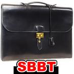 HERMES エルメス ブリーフケース サック・ア・デペッシュ 38 ブラック ボックスカーフ シルバー金具 刻印不鮮明 中古B+ 【送料無料】 A-8430