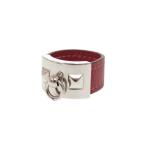 HERMES エルメス Hモチーフ ルーリーリング 指輪 レザー×シルバー金具 レッド 赤 #M(約11.5号)<USED>【送料無料】