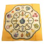 エルメス HERMES カレ40 スカーフ ハンカチ ポケットチーフ シルク 香水柄 黄 イエロー レディース