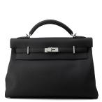 エルメス ハンドバッグ ケリー マキシ 内縫い 42 ブラック/シルバー金具 トゴ W刻印 2wayショルダー 黒 【安心保証】