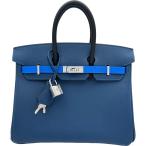 エルメス HERMES バーキン25 トリコロール K刻印 ディープブルー/ブルーイドラ/ノワール エプソン ハンドバッグ レディース 中古