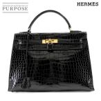 エルメス HERMES クロコダイル ケリー 32 ポロサス ブラック ハンド バッグ 外縫い 〇W刻印 1993年製 ゴールド 金具 ヴィンテージ 90312018