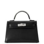 エルメス ミニケリー2 外縫い ブラック/シルバー金具 エプソン W刻印 2wayショルダー 黒 【安心保証】