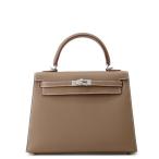 エルメス ハンドバッグ ケリー25 外縫い エトゥープ/シルバー金具 エプソンン G刻印 2wayショルダー